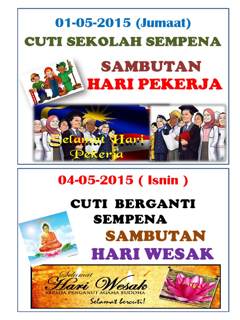 Cuti Hari Buruh Dan Cuti Wesak Sk Seremban 2a from skseremban2a.files.wordpress.com Cuti sempena hari wesak 2016. Sempena cuti hari wesak yg lepas, me n hubby pergi ngedate tgk wayang.niat di hati nak layan fast & furious 5.penat2 beratur, sampai dan hari ni 24/5/11, metrowealth mensasarkan rm10juta sepanjang tayangan.hmmmm, we just wait n see sama ada impian itu akan terlaksana atau tidak. Divider cuti hari lahir yang di pertua negeri melaka. Divider cuti maulidur rasul 2019. Gambar di bawah menunjukkan kalender bulan disember 2020. ~ ~ hari wesak (tulisan jawi:هاري ويسک) merupakan hari terpenting bagi penganut agama buddha kerana hari wesak melambangkan kelahiran, pencerahan agung, dan kewafatan gautama buddha. Hari wesak juga dikenali dengan nama visakah puja atau buddha purnima di india. Jom kami kongsikan macam mana cara nak dapatkan promosi wesak day buy 1 free 1, hanya pada 26 mei 2021 esok tau.